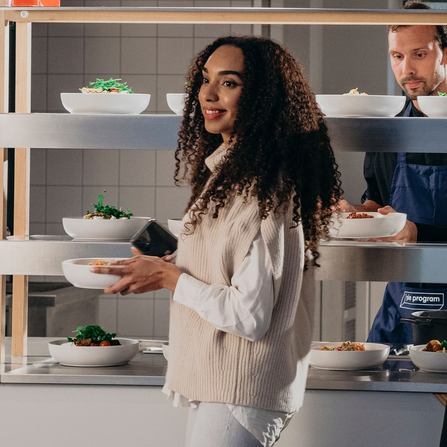 Gehen Sie zu Ihrer Join-Program-Station oder Ihrem Restaurant, scannen Sie Ihren QR-Code und holen Sie Ihre Mahlzeit ab. Ihre Mahlzeit ist bereit, wenn Sie es sind.