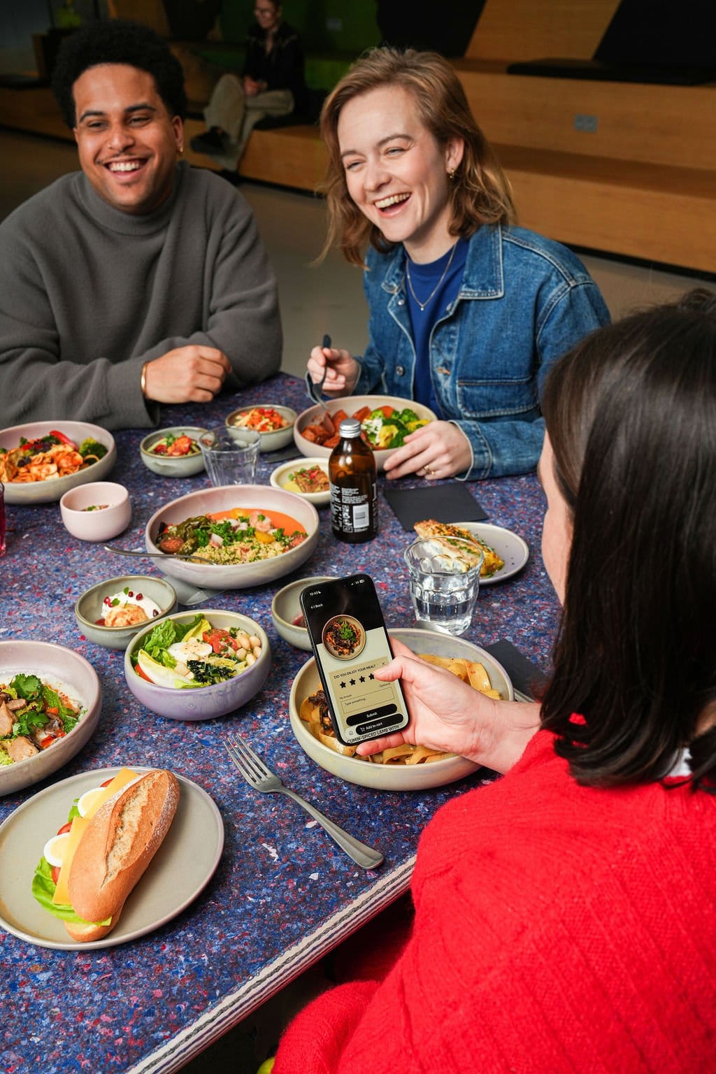 Essen Sie, bewerten Sie Ihr Gericht und sagen Sie uns direkt in der App, was Sie denken. Ihr Input hilft, den nächsten Menüzyklus zu optimieren.
